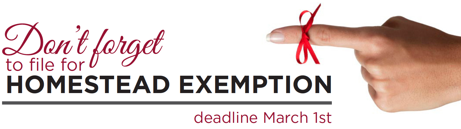 Yes. Qualified Florida residents may also apply for medical, disabled veterans, total and permanent disability, quadriplegic, blind, wheelchair confined, service connected disability, widow’s or widower’s and low income senior exemptions. Instructions and forms can be obtained by printing them from our website by clicking on the following: Homestead Application and Instructions or by calling 941.748.8208. Our office may be contacted for additional information regarding filing requirements.