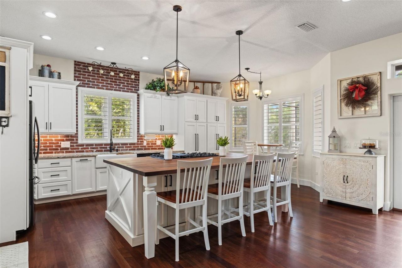 Experience the perfect blend of modern comfort and peaceful country living in this stunning farmhouse estate located on nearly 4 acres in the highly desirable Bayhead Landing Estate Homes community. Surrounded by beautiful mature oak trees, this property offers privacy, charm, and a true Florida lifestyle.This spacious 4-bedroom, 3.5-bath. Home features a thoughtfully designed layout with high ceilings, hardwood floors, and abundant natural light throughout. The open-concept, newly updated kitchen showcases wood cabinetry, a stylish brick backsplash, and a premium ZLINE gas 7-burner stove-perfect for the home chef. The kitchen flows seamlessly into the main living area, highlighted by a cozy wood-burning fireplace and French doors leading to the outdoor living spaces.Designed for flexibility and comfort, the home includes a private mother-in-law suite above the detached garage. with a separate entrance from the home. a dedicated office, formal dining room, large laundry room, and a versatile loft area. Plantation shutters add timeless elegance, while French doors from both the living room and primary suite enhance indoor-outdoor living.Step outside to your private retreat featuring a spacious back porch, designated BBQ area, and a resort-style pool with hot tub-perfect for entertaining. Enjoy serene lake views from your private dock or relax on the second-story back porch overlooking the pool. A large front porch adds even more charm and space to unwind.Recent updates include newer exterior paint, a new roof, and an A/C system approximately 6 years old, offering peace of mind for years to come.Additional highlights include a huge detached garage with plenty of room for vehicles, storage, or a workshop, along with ample space for all your toys, animals, or future additions.This one-of-a-kind property delivers the charm of farmhouse living with the modern upgrades today's buyers are looking for.Located within Bayhead Landings residents enjoy exclusive access to a private community boat ramp, low HOA, and convenient access to I-75-providing the perfect balance of seclusion and accessibility.