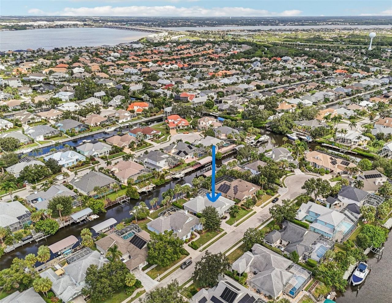 Designed for true boating enthusiasts, this exceptional waterfront residence offers direct Gulf access with no lifts or locks, making every day on the water effortless. Positioned on a deep saltwater canal with a generous turning basin, the property features a 61-foot composite dock, a 36x13 covered 10,000-lb boat lift that is easily increased for larger scale boats. Gem remote, electric hook up and integrated lighting-creating the ultimate setup for serious boaters and anglers alike. Located on a quiet cul-de-sac with no history of flooding, this fully renovated 4-bedroom, 3-bath home blends refined coastal living with modern convenience. Inside, the 2024 designer kitchen is the centerpiece, showcasing quartz countertops, a dual-sided waterfall island, custom cabinetry, a butler's pantry wall, locally crafted wood range hood, and a premium Ruvati 39 workstation sink. The open floor plan flows seamlessly to the outdoor living space, ideal for entertaining. The primary suite offers a private retreat with peaceful water views, dual walk-in closets, direct outdoor access, and a spa-inspired bath with a freestanding soaking tub. Throughout the home, you'll find thoughtful upgrades including large-format 4' ceramic tile flooring, custom built-ins, designer bathrooms with quartz finishes, TOTO bidet toilets, and integrated smart lighting. Outdoor living is equally impressive with a screened-in pool and spa, updated pavers, and plenty of space to relax or entertain while enjoying expansive sunset views over the canal. Additional updates include a newer HVAC system (2023), roof (2017), full gutter system, and extensive 2024 renovations with high-end finishes throughout. Situated in The Inlets at Riverdale, residents enjoy low HOA fees along with access to tennis courts, nature trails, and a community fishing pier. Just minutes from beaches, dining, and shopping, this move-in-ready home delivers the ideal balance of luxury, comfort, and premier boating access.